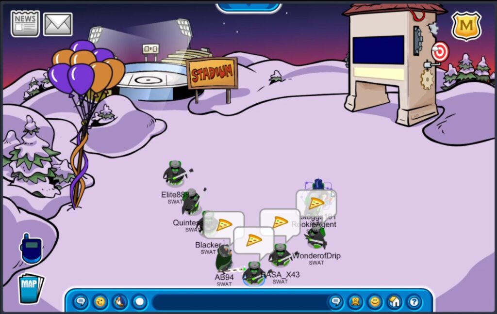 We logged onto Snow Forts and did the usual stuff. I would like to thank Slimerancher for leading and recording this event on my behalf; I was having dinner at a restaurant at the time.